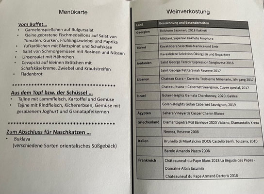 Die Teilnehmer verzichteten darauf, in der üblichen Punktebewertung über die verkosteten 5 Weiß- und 11 Rotweine abzustimmen. Alle Weine waren ohne Zweifel auf hohem Niveau. Natürlich fanden sich die weißen und roten Top-Weine aus Frankreich (Chateauneuf-du-Pape) im Spitzenbereich. Aber auch die Rotweine aus Georgien, Israel und dem Libanon boten herausragende Qualitäten.