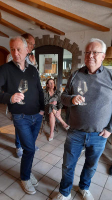 Rechtzeitig zum 70jährigen Landesjubiläum konnte die schon länger geplante Weinprobe des badischen Vereins für Weinkultur Kraichtal im württembergischen Weingut Vincon-Zerrer in Großvillars stattfinden. Die zwölf Teilnehmer wurden von Betriebsleiter Benjamin Zerrer an einem lauschigen Frühlingsabend mit zwei spritzigen Sekten im sonnigen Innenhof begrüßt.